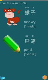 帮助您的孩子掌握上百个常用英语单词、中文字及汉字拼音,并且能够准确的发音,本软件旨在为学龄前或小学低年级学生教授单词学习的方法,软件中既有丰富的卡通插图,又有单词书写的方法,还有标准的单词读音,帮助您的孩子提高英语及汉字学习的乐趣。