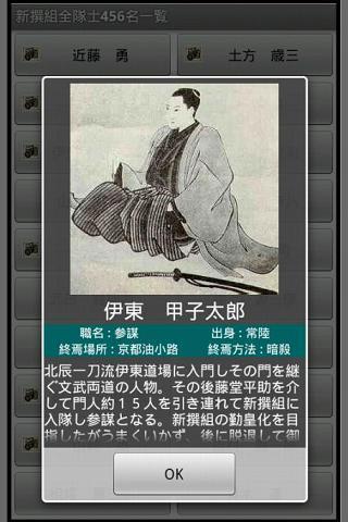 免費玩幕末 新撰組全隊士456名データベースアプリ App
