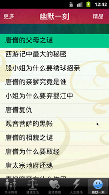 本应用将互联网上网友经常分享的极有参考价值的820篇文章,分成五大栏目整理,分别是“亲子教育”,“健康生活”,“爱情婚姻”,“人生感悟”与“幽默一刻”。通过该应用,您可以随时随地通过手机离线阅读这些好文章,从而不断提高经营家庭的能力。“家和万事兴”,家庭和睦了,事业自然会更成功。祝您阅读愉快,好运连连!