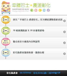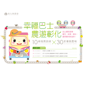 「幸福巴士、農遊彰化」精選10條旅遊路線,帶您從山邊到海濱,賞花、採果、親水,盡享農村鮮滋味!歡迎大家踴躍報名參加。報名專線彰化縣農會04-7279193(報名時間:周一至周五08:00-17:00),網址:www.happinessbus.tw。