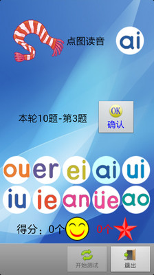 2、为了鼓励幼儿学习,特增加了学习成绩的显示和记录,具体规则如下:答对1题得一个笑脸,一轮全对得一个红星。