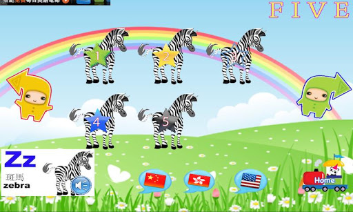 - 每个对象在第一次接触后,会读出相关数字(英文/广东话/国语)可以选择,及不可以重复再点击,可以防止孩子点击两次相同的对象。
