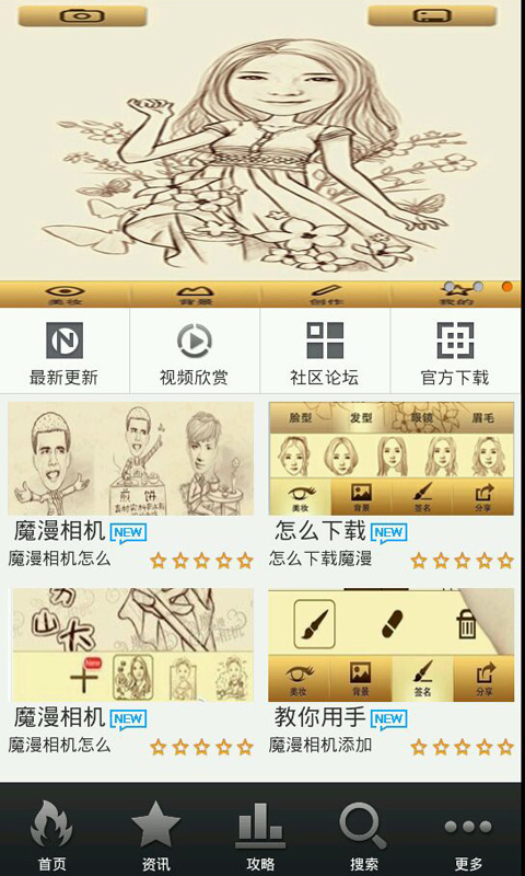 魔漫相机是全球第一款原创将真人拍成幽默漫画的相机。在iOS版本之后,现在已经推出了安卓版,通过魔漫相机能够快捷的让拍摄的真人转换成有趣的漫画人物,具体的操作请看下文。(出于个人隐私的保护,未拍摄真实头像,因而演示效果略有不佳)