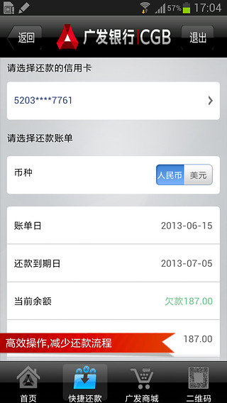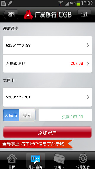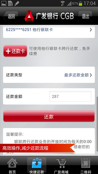 1、新增信用卡积分捐赠、财智金、广发卡交易安全卫士业务;