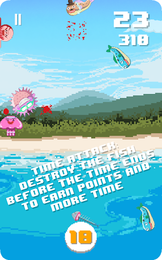 時間攻擊模式:你有30秒鐘就可以毀掉所有的魚,你可以和獲得積分。每個被毀的魚給你1秒如果計數到達零或魚瀑布,已經失去了!