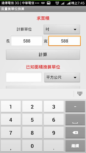 程式裏的面積轉換功能,還有輸入不同面積單位,直接轉換並求總價的功能。