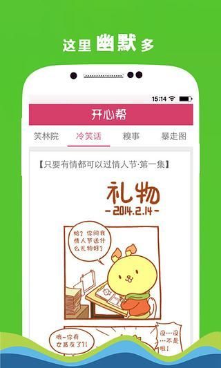 做人就要开开心心首款汇集互联网上各类新鲜流行的搞笑笑话的应用。【主要成分】汇集互联网上各类新鲜流行的搞笑段子,实时更新,支持复制分享【适应人群】给有一身内涵细胞却被深深埋没的你!放松心情,轻松解压,居家旅行、开心必备!【用法用量】在夜深人静,在无聊呆萌,在茶余饭后,在...还有,绝对是你等公交等地铁打发无聊时光不二之选!【注意事项】禁忌独享享,提倡众乐乐,分享是美德。