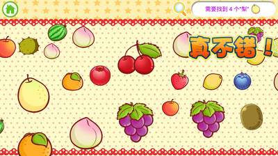 3、“玩一玩”模块是系统在三倍长度的屏幕上随机出现大量的水果,用户根据提示寻找相应的水果。