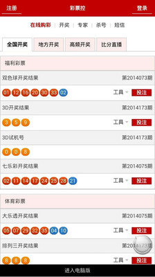 彩票控:专业级彩票垂直网站!提供:在线购彩与福彩双色球、3D、七乐彩、体彩大乐透、排列三等竞猜擂台,及相关彩票开奖公告查询、走势图大全、杀号定胆公式、体育赛事信息与即时比分。