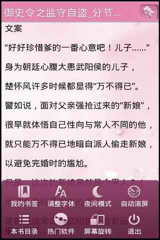 文案 “好好珍惜爹的一番心意吧!儿子……” 身为朝廷心腹大患武阳侯的儿子, 楚怀风许多时候都显得“万不得已”。 譬如说,面对父亲强抢过来的“新娘”, 很早就体悟自己性向与常人不同的他, 就只能万不得已地暗自派人偷走新娘, 以避免完婚时的尴尬。 只是,这次的新娘竟然是个男人?! 而这个自称是御史的男人, 是朝廷派来调查武阳侯私吞贡品一事?还是…… 世上的美男子不乏千万,喜欢的类型往往只有一种,而身后的男子,不巧正对了他的胃口! 只是,建立在欺瞒与谎言之上的感情,如何能够持久? 无论如何,管他是御史是盗贼还是间谍。