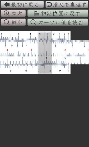 HEMMI社のNo.30計算尺をベースに、滑尺とカーソルを動かすことができます。