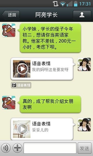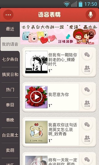 微信官方推荐,超有趣微信变声应用!龙门镖局爆笑语音上线! ★★★搞笑台词大全★★★ ★★★变声逗乐神器★★★ ★★★微信搭讪神器★★★ 「语音表情」是被用户评为最具创意微信应用,支持在微信里发送各种搞笑图片加语音相结合的表情。精选数百张有趣图片和经典台词合成一系列经典语音表情,如龙门镖局段子、西游降魔语音、春晚语音、神曲、星爷语音、卡通语音、小品语音、怀旧语音、明星语音……