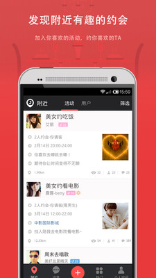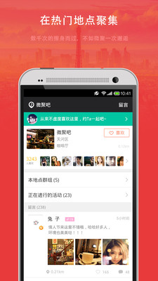 ★约会交友第一应用,用户数量超过1000万,国内最大的线下约会交友社交平台,每天有超过百万的单身男女在微聚举行线下聚会及约会,帮你快速约到你想找的TA。