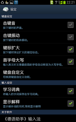 《德语助手》全新发布安卓手机版德语智能输入法。 为德语学习者、留学生以及翻译工作者提供了一条方便简洁的德语输入途径,让您从此不必再为德语的输入烦恼。