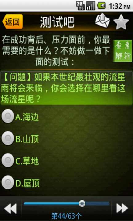 -"摇一摇"功能,支持摇动手机找测试题目,增加趣味性
