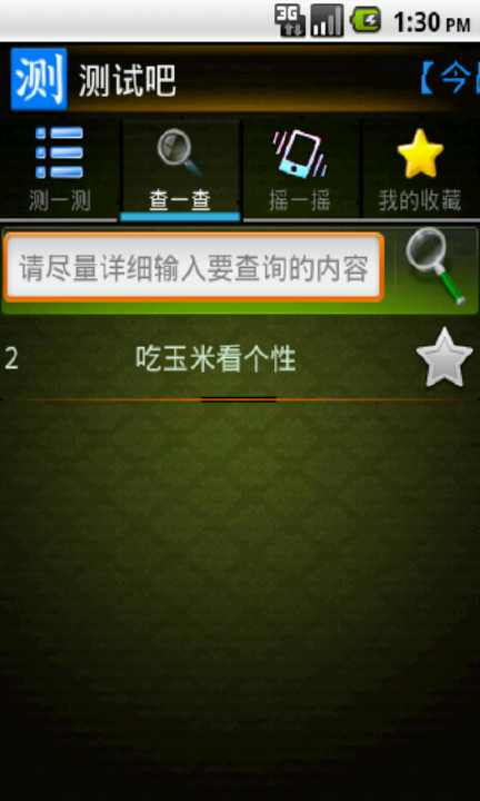 “测试吧”是一款趣味测试类软件,精选了当今流行的心理测试题,内容涵盖了人生的方方面面,包括性格、婚姻、爱情、职场、财富、社交、健康等,趣味盎然,仅供娱乐! 如果您觉得此软件还不错的话,记得推荐给好友使用哦!