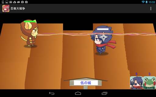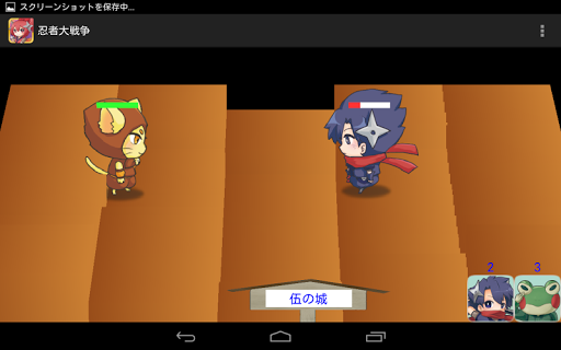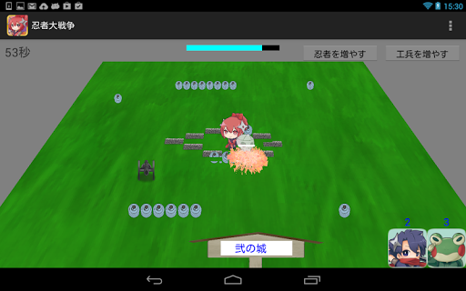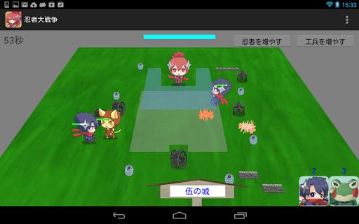 右下のボタンをタップして、忍者や工兵(カエル)を画面上に配備してください。自動的に進んで行きます。