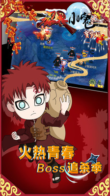 移动平台唯一一款以火影为背景的回合制角色扮演类大型网游,绝对非卡牌。2013年最好玩的火影游戏。多样的玩法,最贴近原著的剧情,让你体验极致的快感!12位高人气漫画忍者随你招募,众多强大通灵兽任你召唤。你想让众位火影与强大三忍与你共同战斗吗? 你想让小樱、雏田等忍者美女都聚集在你的麾下吗? 你想打造属于自己的超级忍者部队吗?你们想要的一切都在《忍界小鬼》,为了追求你的忍道来共同战斗吧!