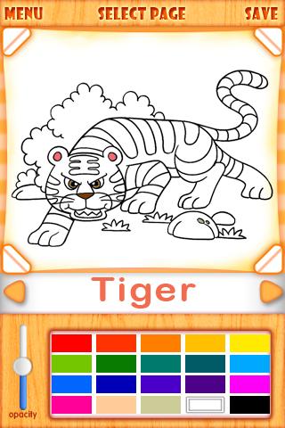这是一款有趣的卡通填色的程序,你可以通过快速选取颜色来给原本空白的区域填上颜色,也可以调整色彩的透明度,通过多次填充实现你想要的任何色彩。填色完成后的图你可以选择保存,它将会在特有的图卡模式下显示出来,图卡模式我们设置了画面中物体的音效和英语的标准的发音,如果你有兴趣学习英语的发音,可以使用画面下方的录音按钮录制你的发音,这样就可以通过播放键和标准发音进行对比学习了。当然,如果你喜欢学习里面动物或者其他物体的声音,当然也可以试一试,或许你可以成为一个口技表演者。