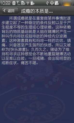 赌博的危害不用多说,很多人赌博上瘾,欲罢不能,而且是越陷越深。[快乐戒赌]提供了一种安全有效的全新戒赌方法。