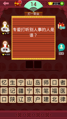 天文地理、八卦美女,千余谜题等你参与。情理之中、意料之外,精彩关卡无处不在。以为这里只能猜谜?NO,这其实是款社交游戏,QQ分享?可以;微信分享?也可以!游戏交友两不误,你是谁的闺蜜?谁是你的基友?GOGOGO,赶紧挑战吧!