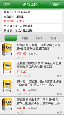 3、一扫就能快速知道商品详情,及各商城比价(京东、一号店、易讯、当当等等)