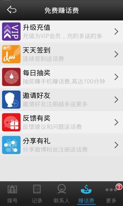 3、更省钱:使用最高赠送60分钟免费话费,还支持每日签到、每日抽奖等;