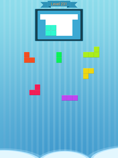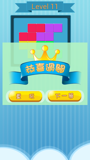 妳需要運用妳的想像力,把下方不同顔色的積木,填充到上方的指定區間裏,積木是不能旋轉的,當把上方的區間填滿後,則過關。