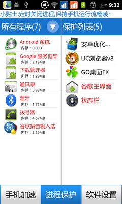 快用内存一键清理是一款强大的任务管理工具,专门针对Android的手机用户设计。软件简单实用,带有内存占用和内存可用信息,让你随时知道手机的状况;只需要轻轻点击,即可让你的Android智能手机运行速度更快,告别顿卡。