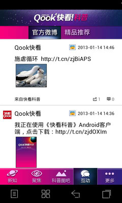互动:官方微博的展示,以及其他媒体优秀APP、网站推荐。