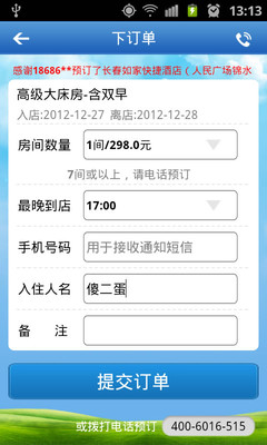 2、24小时电话预订热线(400-6016-515),直接沟通,让你放心预订。