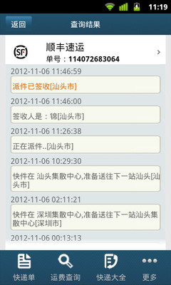 快递查询全国通用版能够实时的查询到申通,顺丰,圆通,韵达,EMS等国内几百家快递和物流的运输情况。不需要输入验证码,一键快速便捷查询。还带有快递单号扫描功能,可以免去手动输入单号的麻烦,是网购达人等的必备软件。