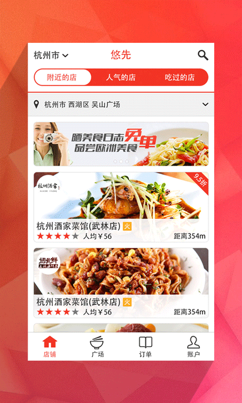 “悠先”是一款集选餐馆、点菜、支付、分享于一体的手机应用软件,为您打造方便、快捷的就餐新体验。您可以通过“悠先”手机客户端查看到当地优质品牌餐饮门店及图文菜单,并预先点菜、支付,避免了餐前点菜、餐后结账时等候的麻烦。悠先会员还能享受特惠折扣、免单抽奖等多种特权。赶紧下载,更多惊喜等着您!【功能特色】1.知名餐厅DD当地知名餐饮品牌持续增加,多种风格的餐厅让您时时有新选择,吃不腻!2.高清图片DD菜品高清大图更诱人,分类清晰、人均参考方便选择,再也不用为点错菜或超预算而尴尬了!3.快速点餐DD极简的点菜流程和体验,选门店、选好菜、支付,随时随地可下单,悠先帮您在吃饭上做减法!4.尾号验证——点好菜后,到店只需报出手机尾号4位数和姓名,就能轻松就餐,二维码甩啦甩啦!5.越吃越省DD用悠先点菜可以获得专属会员的门店折扣,吃得越多,折扣越低哦!6.分享获奖DD点单并分享朋友圈,还能有机会赢取免单大奖!!更多惊喜不定期推送给你【合作城市】杭州、北京、深圳、滨州,更多城市陆续上线,敬请期待!【关注我们】微信公众帐号:悠先新浪微博:@悠先点菜腾讯微博:悠先(@youxiandiancai)PS:中奖信息每月/季度在微信公共平台分享,快去关注吧!2013友络科技ViewAllocallrightsreserved