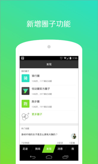 悦动圈全国唯款走路送红包的运动社交与运动工具应用。小奖励,大健康!每天2千米,百分百拿红包!走路领红包:虽小小鼓励,每天给你一个小惊喜!畅聊圈子:运动见闻、感受与疑问,快来放进悦动圈子里。在这里,总有人懂你。久坐提醒:关心白领健康。同城活动:经历有趣时光、结识有趣的人。多维度排行榜:不单是排名,还告诉你多少人与你同行。悦动圈,让运动更好玩!