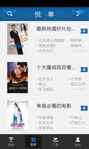 主题悦单:将优秀的视频按照不同主题分类形成悦单,用户便能轻松地看所想看,同时用户还可以创建互动的个性化悦单,发现和分享你心中最得意的影片