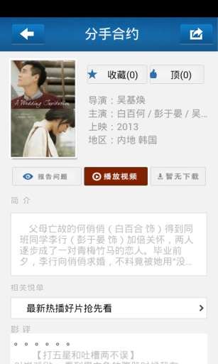 悦视频是一款免费的高清海量视频(包括电影,电视剧和综艺节目)播放应用,把最精致的、品质最高的视频提供给你,在你想看的时候总能依据你的口味找到你想看的影片。