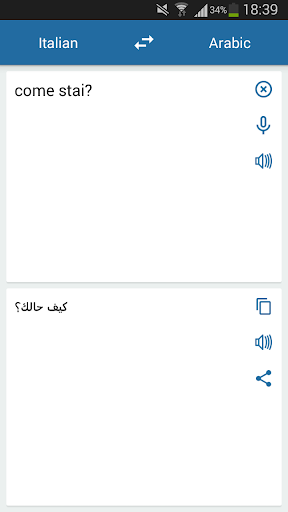 这个免费的应用程序能够单词和文本从意大利翻译成阿拉伯语,并从阿拉伯语到意大利。
