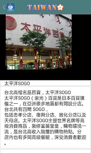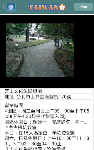 搜集了當地的特色名勝﹑酒店﹑購物﹑食店﹑交通﹑地圖﹑台灣各種知識應有盡有,並且提供相關地圖實景照片,幫助用家認識 台灣,各地地址、電話、營業時間、優惠和乘車路線全掌握!方便用家能輕鬆制定旅遊計劃。