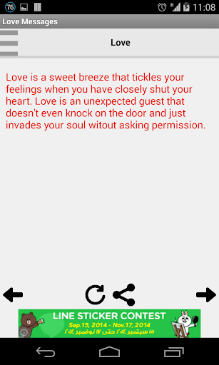 使用刷新按鈕來加載的隨機愛的訊息,或每次使用下一步和上一步按鈕來瀏覽!