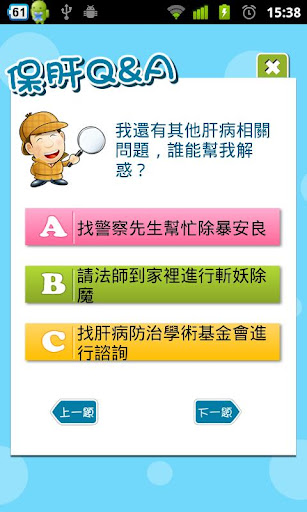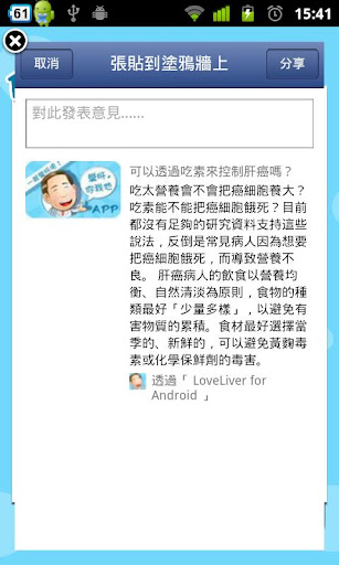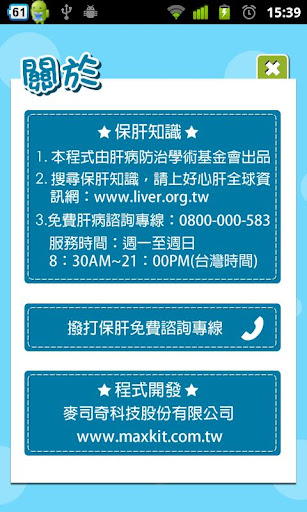 1.本程式內容經由台大醫院粘曉菁醫師及亞東醫院翁孟慈醫師審稿,版權屬於肝病防治學術基金會,提供正確的肝病醫學知識,幫助您更加了解自己的肝。