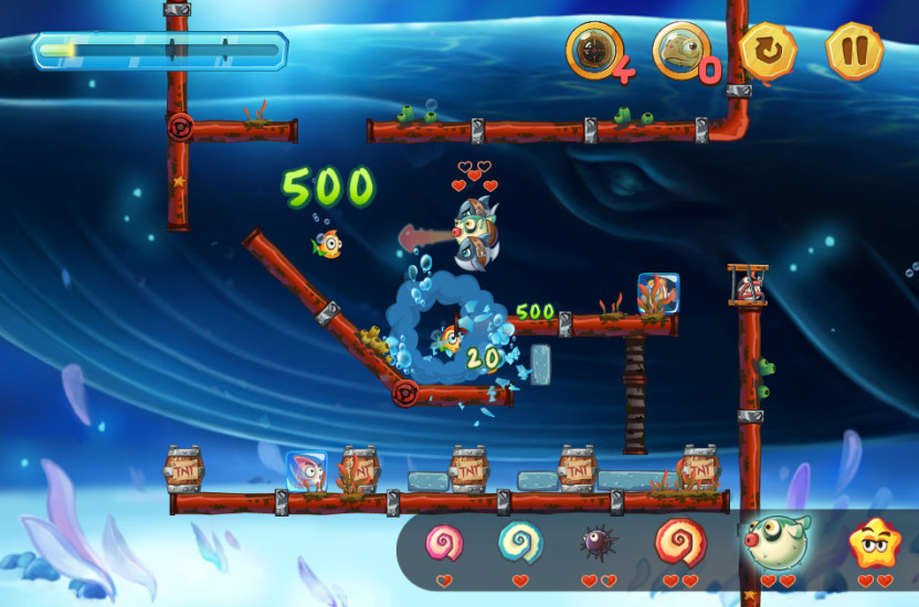 休闲益智大作、AppStore 五星好评!物理引擎碰撞!超爽触屏感应!细腻的海底场景! 120 关9种道具!4大背景主题!强势推出,等你体验!