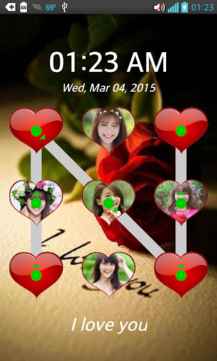 隨著這種模式的屏幕鎖定您可以設置密碼的模式,以提高手機的安全性,並把你的愛人的照片變成了beatiful心。