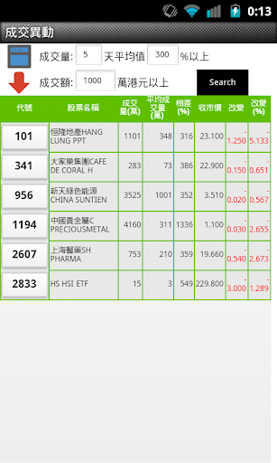 搜索港股中的成交異動! 透過不同搜索組合找出成交異動的股票。