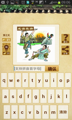 战更多关卡,学习成语知识,与朋友分享乐趣。是一款老少皆宜的图片猜谜类游戏,寓教于乐。喜欢这款游戏的玩家可以试玩一下。