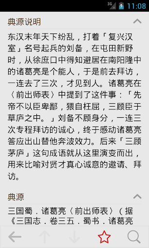 Android 平台上最好的简体中文成语词典(Chinese idioms),是帮助你学习中华典故、拓宽知识面的好助手。