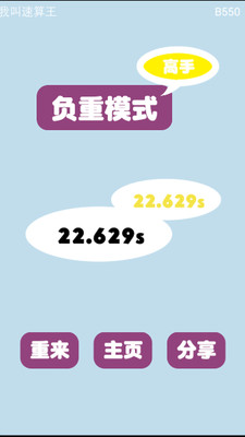 与你的朋友分享和互动,更好的了解他们的“水平”。4种速算体验,分别是对心算速度和手速不同程度的考验,同时也涵盖了几乎各种人群的能力范畴,尤其是残酷模式,并非所有人轻松驾驭,但相信民间自有高手。