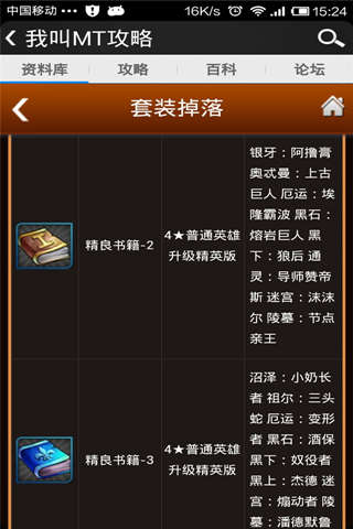 1 资料库:不仅包含了所有最新紫卡的各星级资料、装备的基础资料、所有技能资料、套装掉落等查询,而且还有英雄卡牌和装备卡牌的属性对比,让你一目了然。更有实用攻略让你从新手到高手,再通关精英副本、英雄副本的pve攻略到PVP对战攻略,及时更新的最新资讯保证你不错过任何活动与礼包。