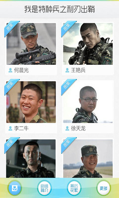 《我是特种兵之利刃出鞘》是南京军区政治部电视艺术中心出品的,刘猛导演,吴京、赵荀、徐佳等主演的特种兵题材电视剧军旅偶像剧。 这部剧中汇集了年轻观众喜欢的偶像派明星,讲述了三个完全不同的90后年轻人如何成长为特种兵战士的艰辛历程。在节目播出之后深受大家的喜欢,本应用通过照片的形式展示了演员们的个人形象,收集了本剧的一些花絮等信息。欢迎大家收藏。