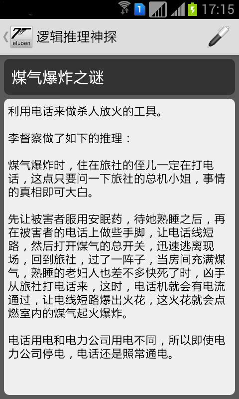 数万推理爱好者参与讨论,发表个人推理意见。软件按照推理难度分三个等级,每个等级多个悬疑案情供人阅读,并提供读者对此案的个人观点发表和查看读者对此案的评价,以及通过知识闯关查看官方较为合理的推理答案。