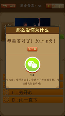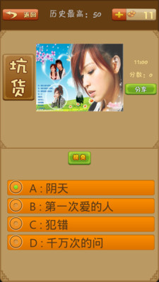 听歌曲,猜歌名,一款好玩的音乐游戏。乐库歌曲丰富,老歌新歌都能听到,最好玩的音乐休闲应用五大特色1.精选明星歌曲合集陈奕迅、周杰伦、张杰、海量音乐2. 丰富多样的歌单风格传统分类:流行、摇滚、动漫、影视、小清新;答题控、猜谜控、音乐控、动漫控绝不能错过的经典游戏。音乐素材精选自数百部著名电影、动漫和畅销专辑,经过特邀乐队的重新演绎,你敢挑战吗?